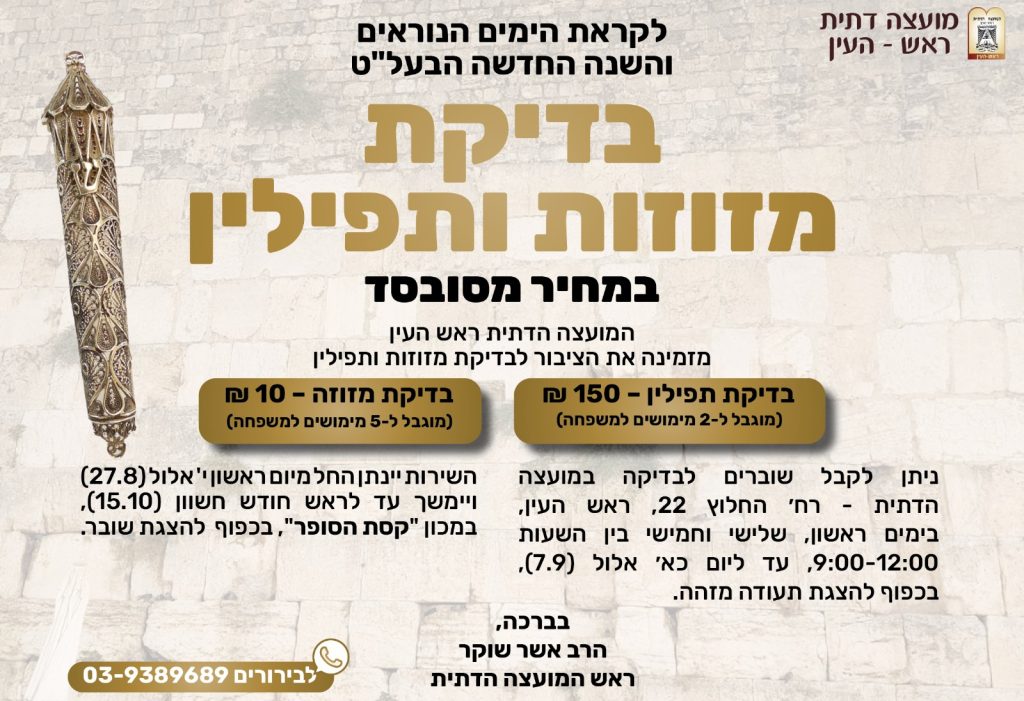 10 אוג מהנעשה במועצה בדיקת מזוזות ותפילין ינואר 7, 2024 By admin לקראת הימים הנוראים והשנה החדשה הבעל"ט במחיר מסובסדקרא עוד